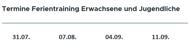 Hallo liebe Judoka, wie jedes Jahr gehen wir während der großen Ferien in die Sommerpause. Pünktlich zu Schulbeginn findet das Training wieder regulär statt. Das Training für Erwachsene und Jugendliche findet Montags um 20:00 Uhr auch in de Ferien an folgenden Tagen statt: